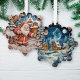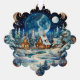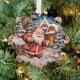 Santa Claus with bag on winter village night Tree Decoration Card
