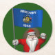 Santa Claus With Ensign Of Wisconsin Round Paper Coaster