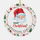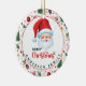 Add a festive touch to your xmas tree with this adorable ornament. Featuring a charming illustration of Santa Claus and a festive pattern as well as your family name, this ornament is perfect for adding a personal touch to your christmas decorations.