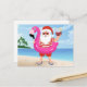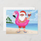 Santa Claus with flamingo inflatable ring Postcard