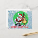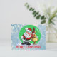 Santa claus with reindeer friend holiday postcard