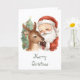 Santa Claus with reindeer & whimsical Christmas Card