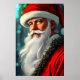 A portrait of Santa Claus with a white beard and Santa hat. This is a AI generated art.