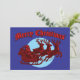 Santa Clause In Sleigh & Reindeer Christmas Holiday Card