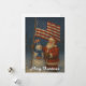 Vintage American Patriot Santa Claus With Snowman Holiday Card.