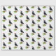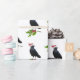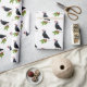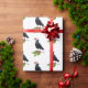 A jaunty crow wearing a Santa hat holds a sprig of holly on this holiday wrapping paper.