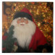 Festive Santa Decoration in front of a lighted Christmas Tree.