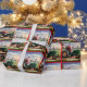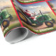 Santa Claus is shown driving every farmer's green tractor on a farm.
