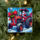 Santa Driving A Red Tractor In the Snow Christmas Ceramic Ornament
