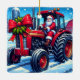Santa Driving A Red Tractor In the Snow Christmas Ornament