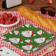 SANTA FACE CIRCLES, Green Glitter-Paper Plates-An allover Santa Claus face with text circled around his head. Santa's sporting his red Santa hat and gold glitter glasses. Decorative red and gold text circles around and reads: Ho Ho Ho, Merry Christmas! The background is a glittered green pattern. This Santa pattern is available with assorted background colours. Coordinating Zazzle home gifts and party supplies is available.