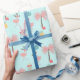 Santa Flamingo Pattern Fun AquaTropical Christmas Wrapping Paper