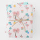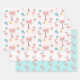 NewParkLane - Whimsical Christmas wrapping paper sheets, with a tropical Christmas pattern, featuring a fun colourful pattern of pink flamingo's wearing Santa hats, one with palm trees, pineapples and presents, against a blush pink background. One with a whitebackground and another with a fun aqua background. Background colours can easily be changed.