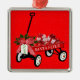 Santa Flyer Toy Wagon with Year or Initials Christmas Ornament. Matching gift tag at https://www.zazzle.com/z/pwtbn?rf=238126934954044669. Design and some graphics by Claudine Boerner with some graphics modified from photos released under CC0 license.