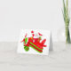 Cute Christmas Santa flying an airplane with a sack full of gifts and the propeller has red and white stripes greeting card.