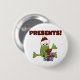 Santa Frog holiday T-shirts, sweatshirts, tote bags, cards, stickers, mugs, magnets, keychains, and other holiday apparel and gifts featuring a frog in a Santa hat, presents, and text that reads "Presents!".