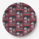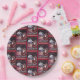 A plate with a funny cartoon Santa being stopped by the police because Rudolph, the red nosed reindeer, shines his nose too bright.
