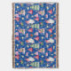 Santa Gnome for Holidays Pattern Blue Background Throw Blanket. Features a blue background pattern with gnomes, presents, holly, candy canes, Christmas trees, and Santa's bag. Personalise this to tile your own image.