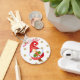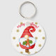 Cute Santa Claus gnome and golden snowflakes. Happy Holidays! Merry Christmas!