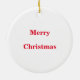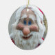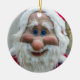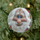 A close up photograph of a garden gnome in a Santa costume printed on a round Christmas Tree ornament. The message at the back says: "Merry Christmas"