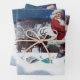 Santa Going Down Chimney with Books Wrapping Paper Sheet
