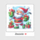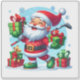 In a festive winter landscape, a cheerful Santa balances colourful presents in his arms, holding a golf club in one hand.