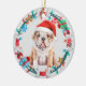 Santa Hat Bulldog Puppy Bone Wreath Ceramic Tree Decoration