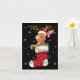 Santa Hat Hare Animal In Socks Xmas Tree Lights Card