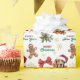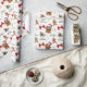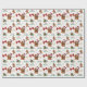 The repeated pattern on this Christmas wrapping paper includes an image of a beautiful Irish Setter dog wearing a red and white Santa Claus hat. Also included in the pattern is a gingerbread man, a red bow, a holly sprig with red berries, and varied sizes of ornate gold snowflakes. Stylized red and green text says MERRY CHRISTMAS" and "HAPPY NEW YEAR". Be sure to see the matching gift tags in our store.