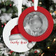 Celebrate a magical holiday season with this adorable Santa hat personalized photo Christmas ornament. Featuring a festive red Santa hat illustration and customizable child’s name, this ornament creates a sweet and memorable keepsake for your Christmas tree.