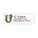 Add a festive touch to your holiday mail with these personalised return address labels! Each label features a playful cartoon filigree monogram "U" adorned with a Santa hat, alongside your address details. Customised with the year, these labels bring a bit of seasonal charm to every envelope you send. Perfect for holiday cards, party invitations, or seasonal greetings, these labels add a cheerful, personal detail that friends and family will love. Let your holiday spirit shine from the first glance of your mail with these delightful, custom-designed address labels!