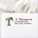 Add a festive touch to your holiday mail with these personalised return address labels! Each label features a playful cartoon filigree monogram "T" adorned with a Santa hat, alongside your address details. Customised with the year, these labels bring a bit of seasonal charm to every envelope you send. Perfect for holiday cards, party invitations, or seasonal greetings, these labels add a cheerful, personal detail that friends and family will love. Let your holiday spirit shine from the first glance of your mail with these delightful, custom-designed address labels!