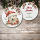 On the front of this Holiday ornament is the image of an adorable white polar bear wearing a red and white Santa Claus hat and a neck scarf. At the top is a half wreath of holly leaves with red berries. On the back, red text says MERRY CHRISTMAS", and there are additional text fields for you to personalise the ornament. Cute for a daughter, granddaughter, son or grandson.