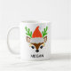 Spread holiday cheer with this adorable Personalized Girl Reindeer Mug! The sweet design features a reindeer face with cute eyelashes, green antlers, and a festive red Santa hat. Customize it with any name (e.g., 'Megan') to create a charming Secret Santa gift, a perfect stocking stuffer, or a lovely personalized gift for friends and family during the Christmas season.