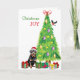 Santa Hat Rottweiler Dog, Bird and Christmas Tree Holiday Card