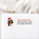 The left side of these fun Holiday return address labels features an image of an adorable Springer Spaniel Dog wearing a red and white Santa Claus hat. Your custom text is in red and black at the right. A subtle gold confetti background gives a bit of Christmas sparkle.