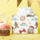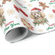 The repeated pattern on this Christmas wrapping paper includes an image of an adorable Toy Poodle dog wearing a red and white Santa Claus hat. Also included in the pattern is a gingerbread man, a red bow, and varied sizes of ornate gold and red snowflakes. Stylized red and green text says MERRY CHRISTMAS" and "HAPPY NEW YEAR". Be sure to see the matching gift tags in our store.