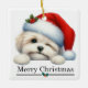 Santa Hat Winking Havanese Puppy Christmas Ceramic Ornament