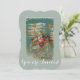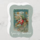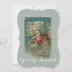 Here comes Santa! He is steering his amazing flying machine through the night sky. Stars, streamers and fancy decorations bedeck the aircraft and its load of wonderful toys for Christmas morning. The restored image of a Victorian postcard features a frosty background, gold accents and beautiful, bright colours. It is framed in icicles and ornaments with a Christmas village in the background.