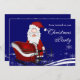 A cartoon Santa Claus and his sleigh on a blue snowy background. Cute Christmas design for your company Christmas party.