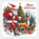 Santa Ice Skating With a Reindeer Square Sticker