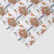 This fun and colourful Christmas tissue paper features a bright original illustration of Santa looking out the window of a candy covered gingerbread house. An elf with a gift waves to Santa. Two more elves are ice skating on a frozen pond. An elf is riding a rocket, and still another elf is in a hot air balloon. Rudolph is peaking around the corner of the house. It’s sort of a where’s Waldo of Christmas illustrations. Original artwork. Copyright Leah Wiedemer