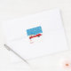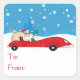 This sticker features a Santa Claus driving a big red convertible in the snow and the text "to" and "from" to be used as a gift tag.