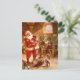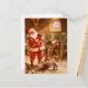 Santa in the Reindeer Barn Holiday Postcard