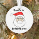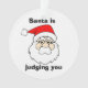 "Santa is judging you" funny slogan Christmas ornament with suspicious looking Santa cartoon.