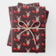Novelty Christmas wrapping paper sheets with a pattern of jackalopes in Santa outfits on a purple background.