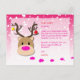 A pink postcard for kids that features falling snow, a reindeer and a naughty elf. Send your child this personalized letter from Santa, there is room on the back for their Christmas list. The name, message and greetings can all be customized. For girls big and small.