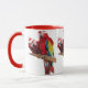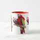Santa Macaws Mug Red. A very beautiful mug for anyone you love. Give it for any reason at all. Maybe a thank you, a Birthday or Just because! Designed written and painted by me from one of my original watercolor paintings.