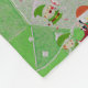 This design artwork for the New Year season is a lively and whimsical illustration filled with vibrant colors and festive characters. Dominated by a bright green background, the scene is bustling with playful figures, including multiple cheerful Santa Clauses, adorable elves, and charming penguins.