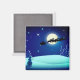 This magnet has an artsy picture of Santa flying through the sky with his reindeer.